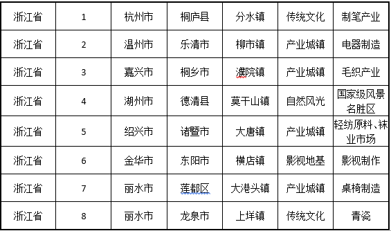具体包括:2个传统文化小镇,1一个红色旅游小镇,1个自然风光小镇。