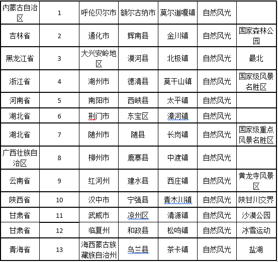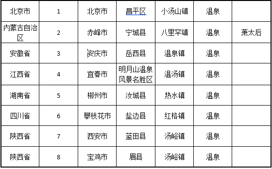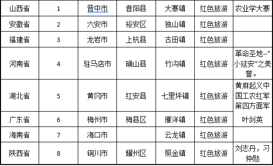 具体包括:2个温泉小镇,1个红色旅游,1个自然风光,1个农业小镇。