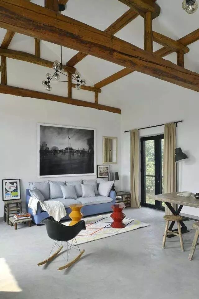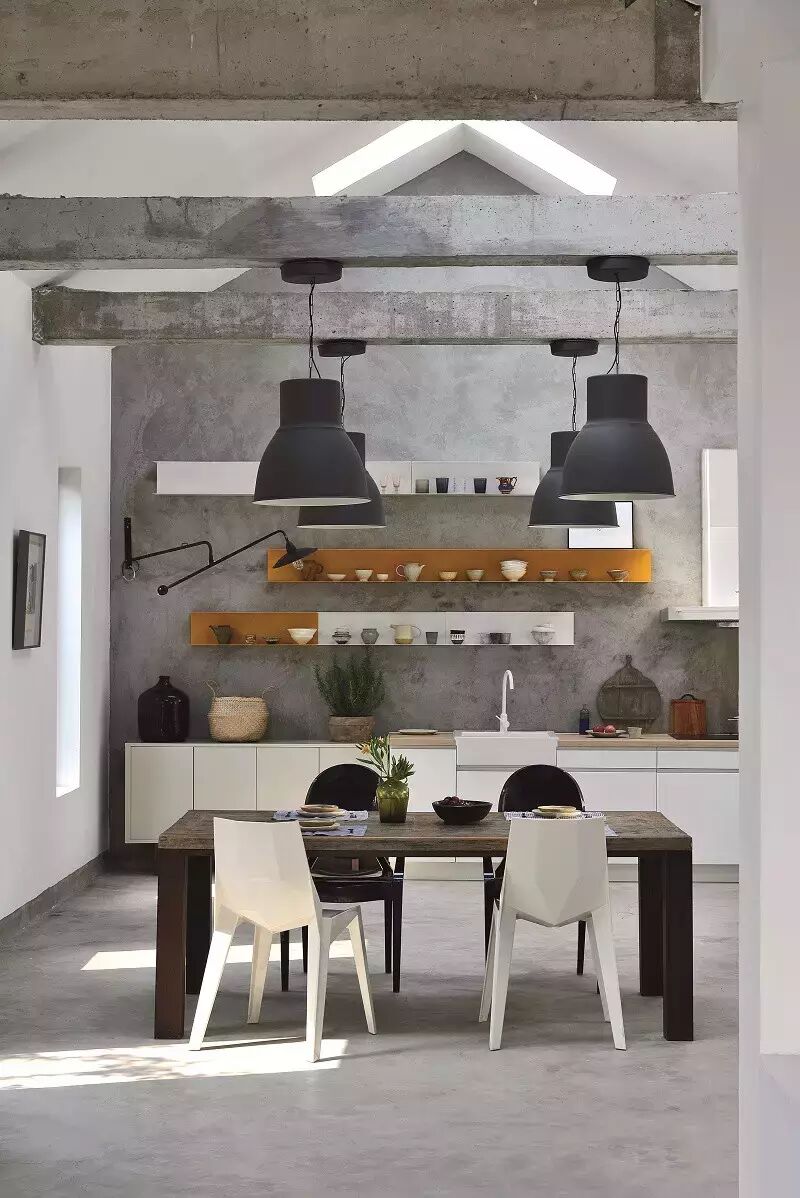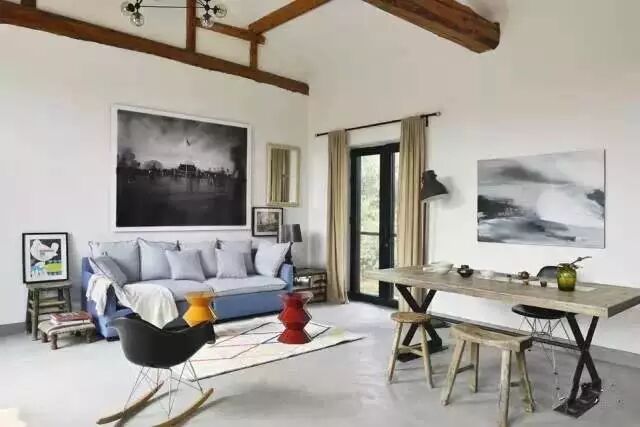 壁画,旧木桌,以及loft风的落地灯,